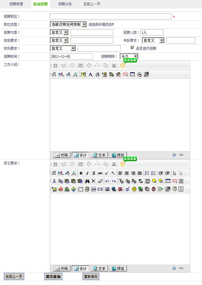 12.在“其它要求”字段,可以在線編輯您職位的其它要求。