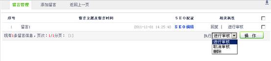 3.在“在留言列表”,設(shè)置留言的SEO配置、修改、回復(fù)、是否審核,刪除等操作。