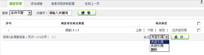 在“調查列表”,設置調查上下移動、修改、是否開啟引用,刪除等操作。